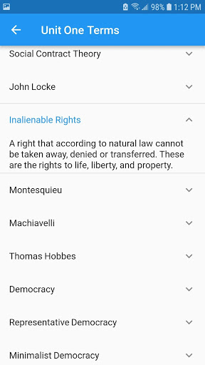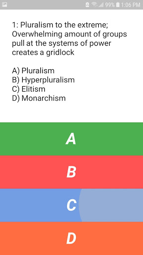With 139 terms and six unit tests, AP GO POW helps students prepare and practice for the Advanced Placement Exam for Government and Politics (AP GOPO). Units include the Basics of Government, the Amendments, the Legislative, Judicial, and Executive Branches, and important Court Cases. After taking practice tests, see your scores along with a list of terms that you missed. Go back and relearn definitions in the Terms List section, then redo tests to get a higher score.
