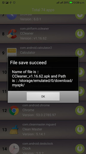 * By Default Apk's will be saved in /sdcard/Downloads/myapk/.