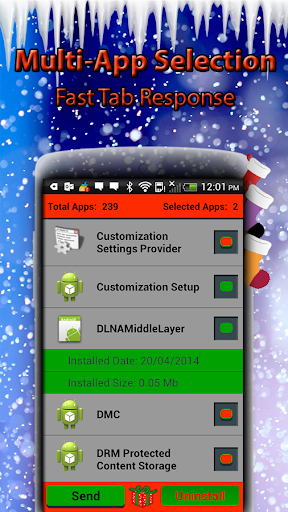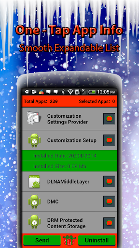 APK Trader App Send edition calculates the total number of installed apps on a device and displays them in alphabetical order. Simply pick and choose the apps you would like to send or uninstall. App information is available upon clicking a list tab.