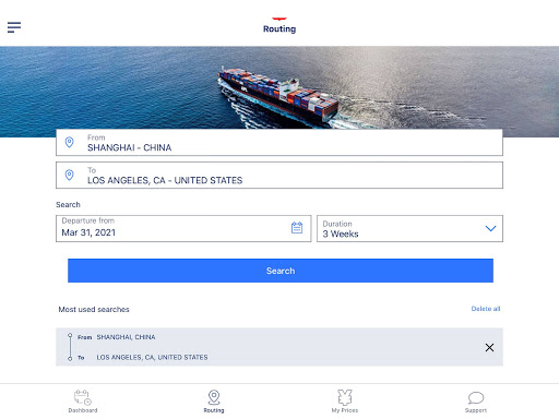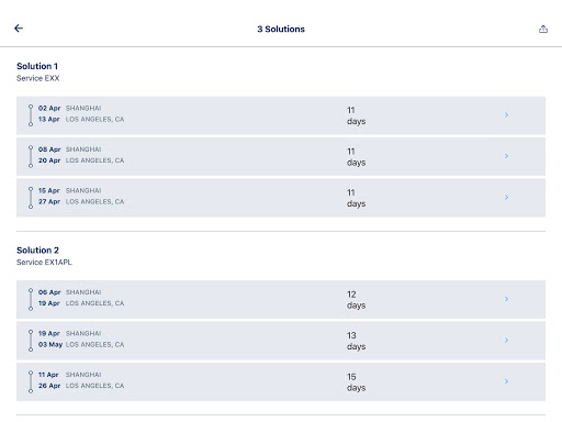 Use the APL Shipping App to search for specific vessel schedules, voyages, or use our routing finder. Directly plugged to the Information System, the App will provide information and optimized routing solutions from among more than 200 shipping lines and over 500 vessels calling 420 ports all around the world.