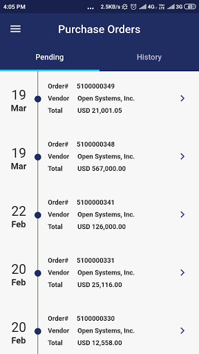SAP users will now be able to approve/reject a PO through mobile app. Adding to this PO history is also made available to use.