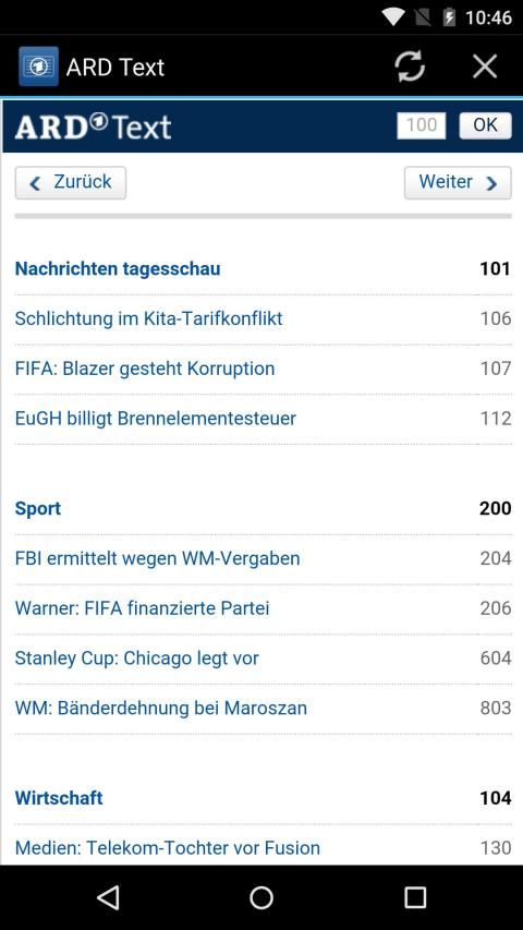 World news of the daily news, sport reports and results, live ticker, service and advisor as well as program information can be retrieved on TV, in SmartTV via the red button and also on the Internet at www.ard-text.de.