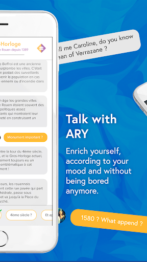 ARY, your augmented visit guide was created to guide you in the streets, and bring historical places you want to discover to life. Once in front of a monument, talk with ARY about historical characters who went there and amazing hidden anecdotes.