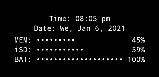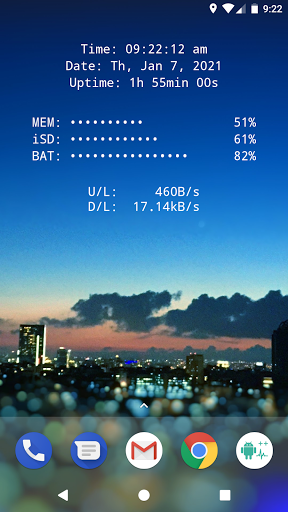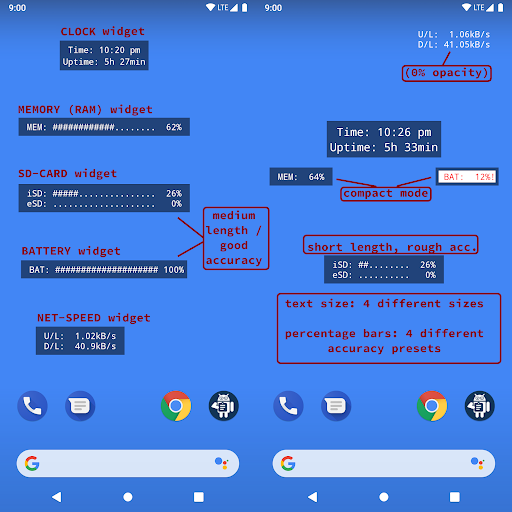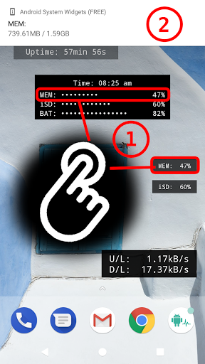 Tapping (most of) the widgets will have certain results, like showing the exact values of the memory or SD-card usage as toast message