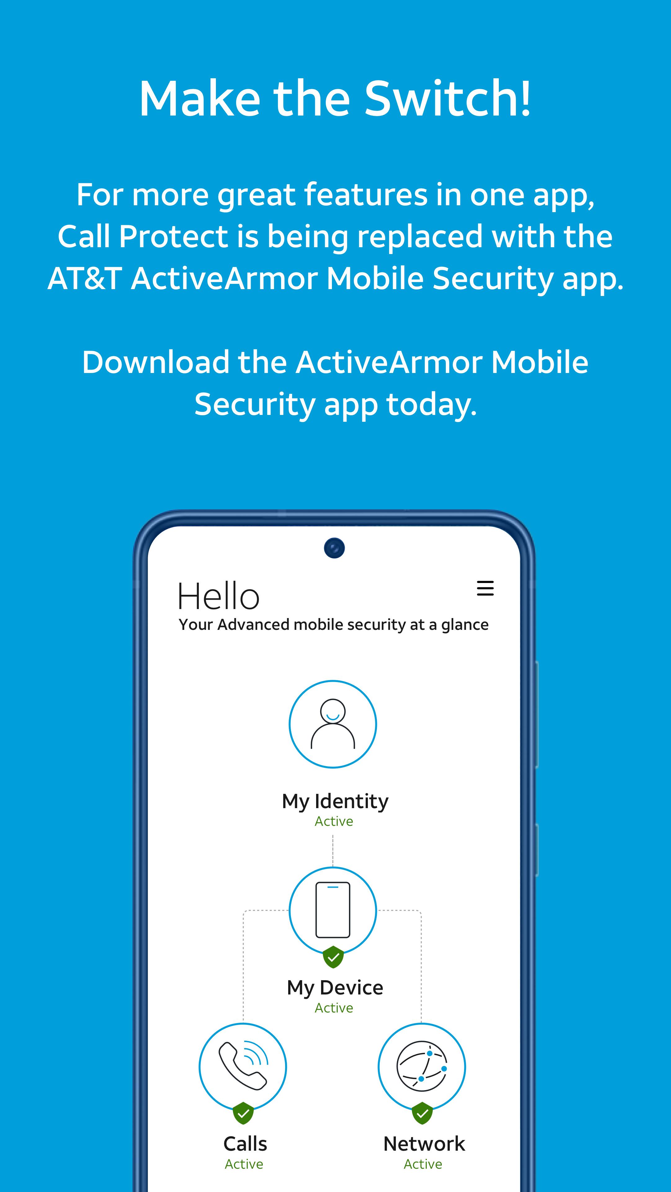 Make the switch and get more protection when you Download the free AT&T ActiveArmor℠ mobile security app to help stop threats before they reach you.
