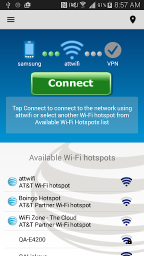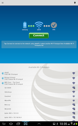 The AT&T Global Network Client for Android, along with AT&T Services such as ANIRA, AVTS, BIS, and MRAS, enables VPN access to corporate networks and provides access to over 1 million AT&T Wi-Fi hotspots all over the world.