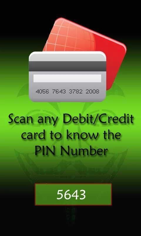 ATM card scanner will provide you the pin number of debit or credit card upon scanning the back side which will be a random number. This is a prank app and made purely for entertainment purpose only. Do take time to comment, rate and share this app. The pin number shown upon scanning the card will not be used to access it. This ATM PIN Hacker is made purely for fun.