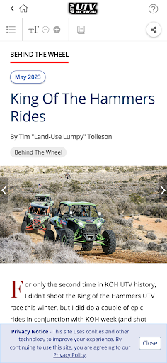 On the cutting edge of the ATV and UTV world, ATV 4 WHEEL ACTION Magazine covers EVERYTHING in the sport. We ride and race nearly every new ATV and UTV on the planet, and give you the hot set-ups for your ride. We test every hop-up part and accessory under the sun to make your rig faster, and keep you ahead of the competition. In the sand, woods, mud, and desert, we'll tell you what works best. You'll get how-tos on everything from tire changes to complete engine rebuilds. PLUS, there's a complete section on UTV's-only stuff in every issue. No other magazine delivers the ENTIRE ATV world like ATV 4 WHEEL ACTION Magazine! Read and purchase current and past issues (available within the App) and download it to your account. Issues purchased in the App have enhanced features, including special video coverage on races, bikes, products, plus links to all manufacturers' websites. 12 issues (one year) for $8.99. Download the current issue, or back issues for $2.99 each. The subscription will include the current issue if you do not already own it.
