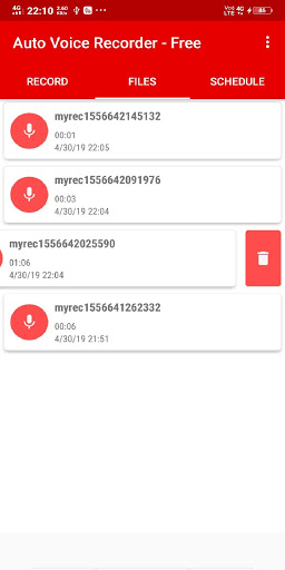 - Delete your recording right from the app by swiping left