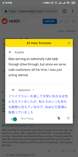 Translate all languages: English, Spanish, Portuguese, Arabic, Chinese, Japanese, Korean and more than 150 languages, with many results from famous translators Google Translate, Yandex Translate, and Baidu Translate.