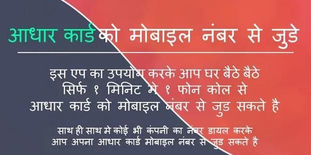 Aadhar Card Link to Mobile Number from Phone Call application helps you to easily link your Aadhar card to mobile number to with the help of this application.