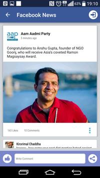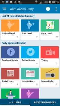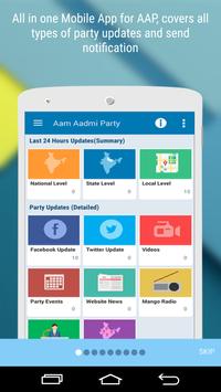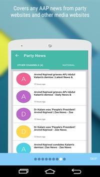 This app covers party News and Videos from Youtube, AAP website news, Facebook news, Twitter news, Awaz Aapki news and other channels news at one place. This app also covers party events, party vision, agenda, FAQs and many more.