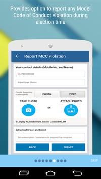 New feature has been added which would allow you to complain to Election Commission of India directly against any political parties if they violate model code of conduct (Delhi Specific). Both Photo and Video options are available now. Users can track the status of his last complaint on Mobile app itself.