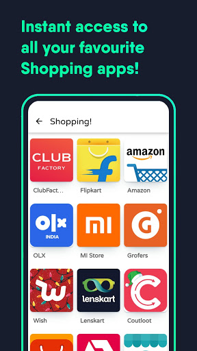 - Online Shopping Apps : Have easy access to various popular shopping apps at one place.