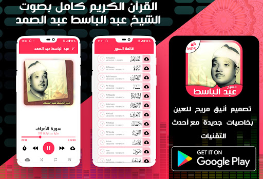 This application lets you listen to the recitations from the Holy Quran by Abdelbasset Abdessamad Warch from Nafiaa, you can also downloan the holy quran with recitation of Abdelbasset Abdessamad as mp3 files.