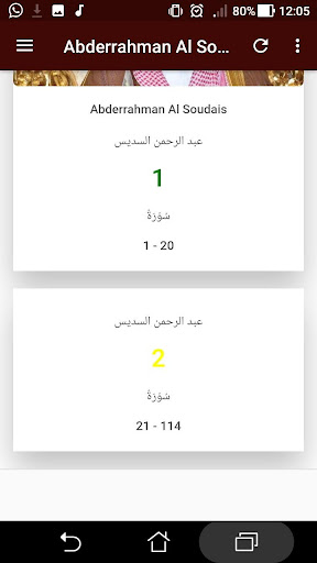 このアプリでは、インターネット接続を必要とせずに、スマートフォンやタブレットに掲載されているAbderrahman Alが列挙されたフルセントコーランを聴くことができます。