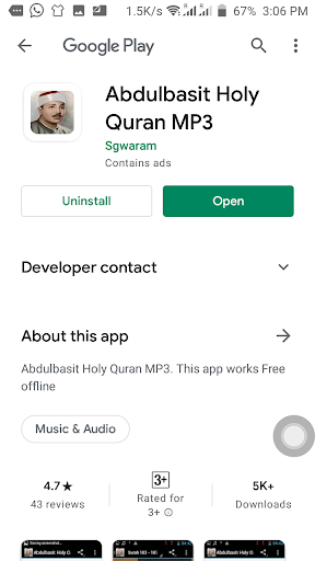This app is about Sheikh Abdulbasit Abdussamad. Download and start listening to quran as recited by sheikh Abdulbasit Abdussamad. The app works without internet connection