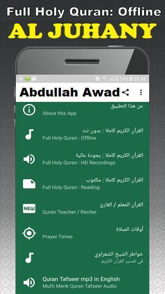 Download and start listening to Full Holy Quran Recitation by Sheikh Abdullah Awad al Juhani Full Quran.