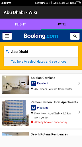 Whenever you visit a city the first thing you look up is a place to stay, which is the reason Booking.com is integrated inside the app with Abu Dhabi as its priority to manage your Hotel Bookings