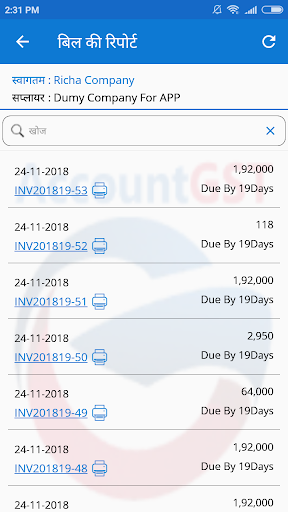trust with your Customer. It will also help in prompt payment collection to maintain healthy cash flow. Customer can Open or Print their Bill Outstanding, Ledger, Goods Shipping details in this app.