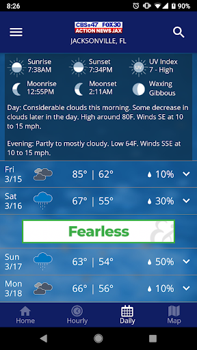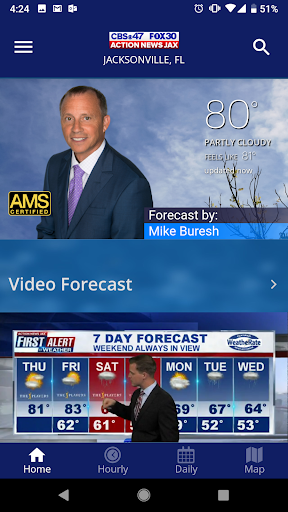 Get the most accurate Jacksonville-area forecast in town with the First Alert Weather App from Action News Jax - WJAX/WFOX. The app features the forecast from your neighborhood, live radar, breaking weather alerts, live streaming video from Chief Meteorologist Mike Buresh and the First Alert weather team.