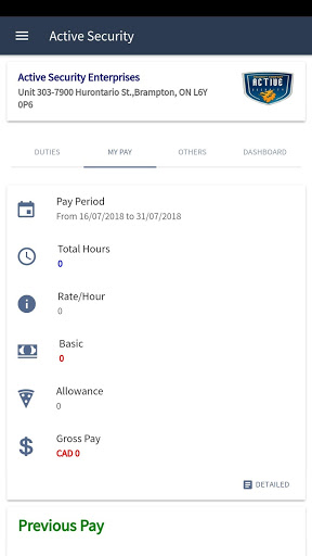 The employees of Active Security Enterprises can view their upcoming and current ongoing duties and manage their duties at their fingertips. The guards can accept or reject the duties assigned to them. They can even see the number of hours worked and the gross salary for those hours.