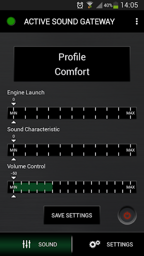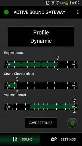With the help of this App you are able to adjust the Sound of your Vehicle with an Active Sound Exhaust System.