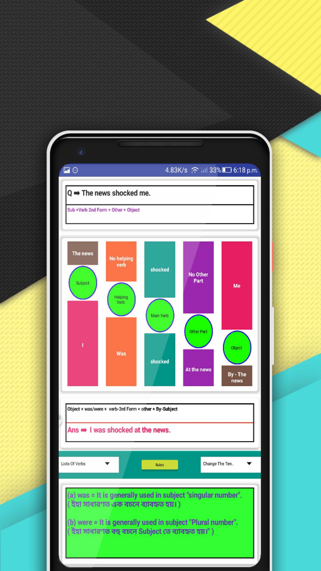 *Active Voice Passive Voice English Grammar app, show you how to use Active voice passive voice with animation.