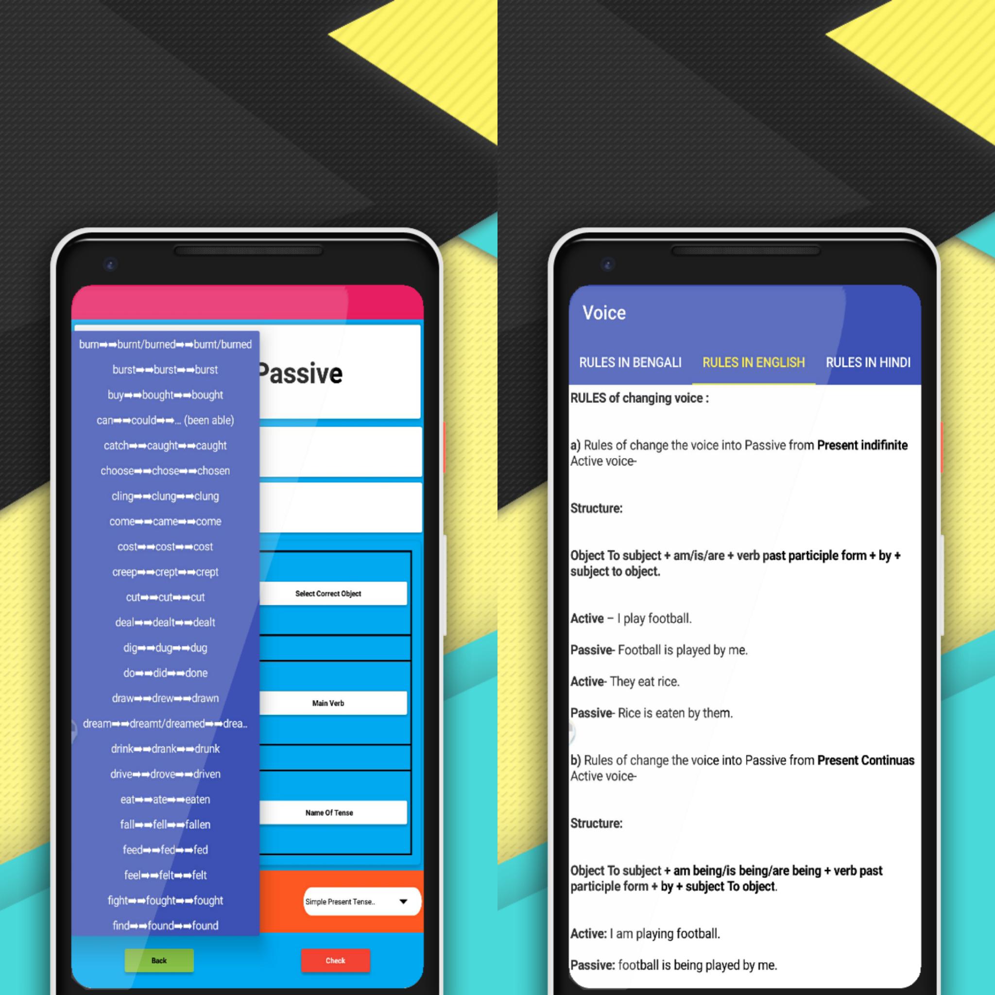 *Active Voice Passive Voice English Grammarr app, show you how to use voice and Tenses.