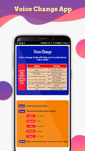 This app works as an active to passive voice changer app. Active to Passive Voice Converter, show you how to use in English Grammar.
