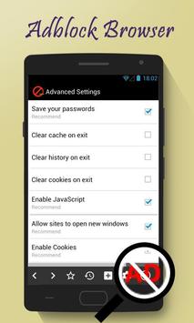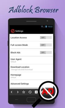 A fast internet browser with advance ad block features. If you are tired of ads in web browser, just keep your ad blocker active and you'll have no ads appearing on your web browser.