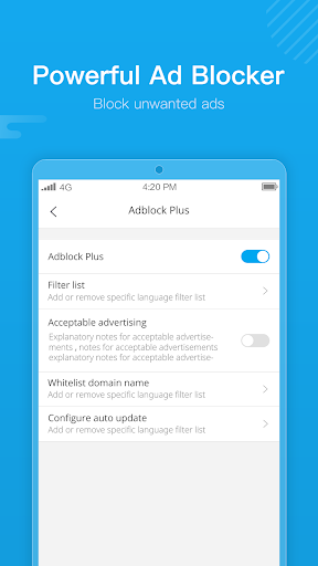 ● Ads Block: Integrated Ad Blocker to effectively block annoying ads, pop-ups, banners, as well as some specific JavaScript, to give you a comfortable browsing experience and make the page loading with a rapid speed, also reduce the internet data usage for users.