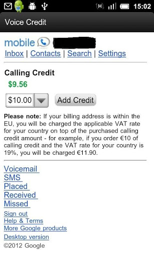 I was frustrated with not being able to quickly add credit to my google voice account on the go, so decided to create this app that goes directly to the Google voice add credit page Authentication is still required, but you can choose to stay logged in.