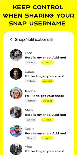 Snapchat Friends is a simple app to help you gain popularity on Snapchat and build friendships. Snap Friends is quick and easy to use. Filter by interest, age, gender, and hobbies. Adding a user is very easy, you can only press the username.