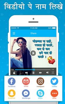 अब Video पर अपना या अपने प्रेमिका या दोस्तों का नाम आसानी से लिखिए और शेयर कीजिये | इस एप्प में संपूर्ण और सरल हिंदी कीबोर्ड दिया गया हैं| एप्प में दिए गए स्टाइलिश हिंदी फोंट्स का उपयोग करके आप आकर्षक तरीके से किसी का भी नाम या कोई message लिख सकते हैं.