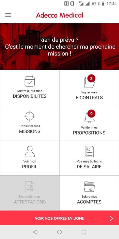 L’app Adecco Medical – espace perso permet :