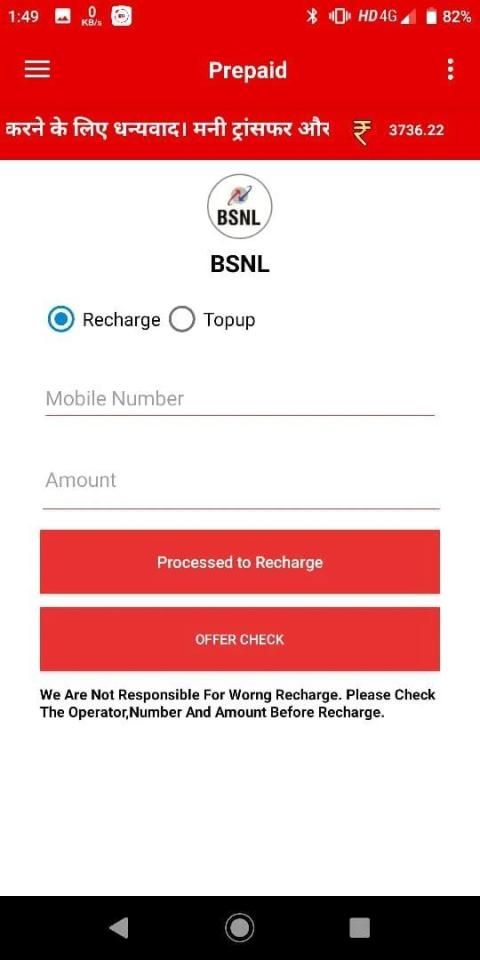 Application offers simple and instant recharge for Aircel, Airtel, Vodafone, Tata Indicom Mobile, Reliance Mobile,
