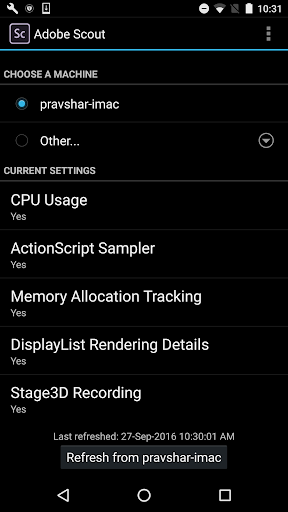 The Adobe® Scout mobile app is for developers using Scout, the new profiler and analysis tool from Adobe. Install Scout on your desktop, then run this app to profile your Android apps.
