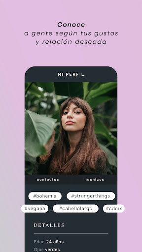 Las opciones para describirte y para buscar perfiles afines no tienen límites (gustos culturales, hobbies, estilo de vida, relación deseada, signo del zodiaco, alimentación, compatibilidad y un largo etc.), lo que te permitirá saber directamente si una persona puede o no interesarte.