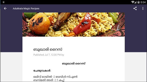 This app gives you each Recipes in Malayalam only. It is a very useful App for cooking lovers as well as new cooking Learner also.This app will use in your kitchen at any time.