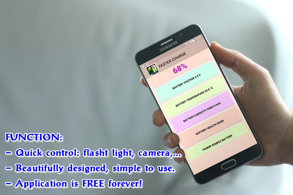 Advance Charging Battery you just press the "Start" button, the app will automatically optimize the phone's charging capabilities by: kill all background apps,