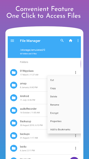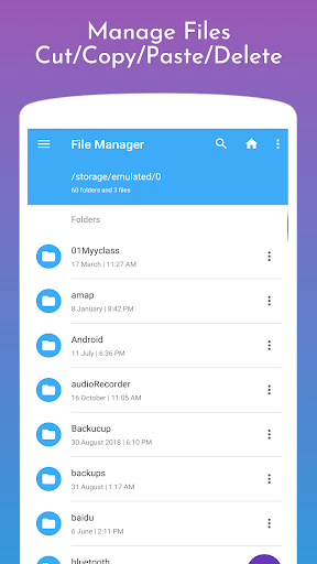 - Basic features like cut, copy, move, rename, clone, delete, compress, extract, file browser, file explorer for android, file manager premium, storage cleaner, my files app, file manager HD, etc.