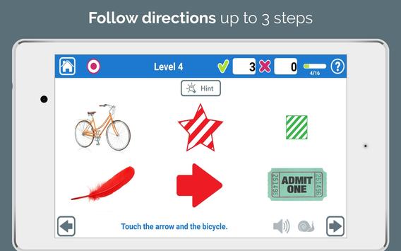• 16 levels of difficulty for following directions