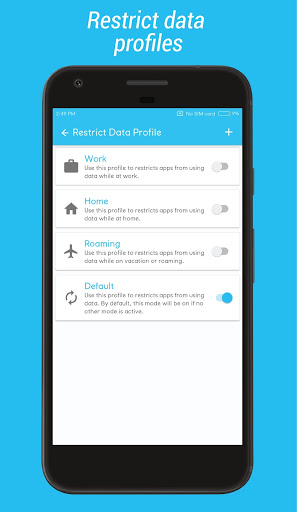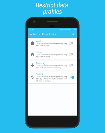 - Restrict Data: Create profiles that can be easily managed to restrict data for specific apps. This means you can create a vacation profile, work profile, and more to ensure you won’t be charged overage fees. For example, you can restrict data usage for certain apps when roaming. Setup multiple profiles in a few clicks.
