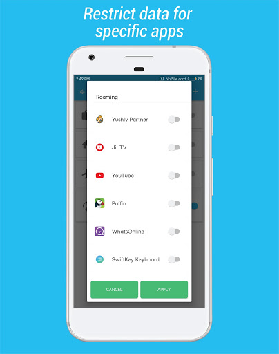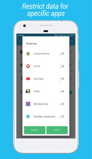 - App Level Data Monitoring: Track your data usage on mobile, Wi-Fi, and roaming