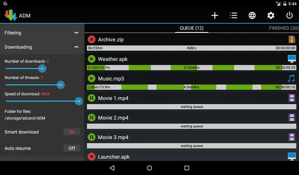 Advanced Download Manager intercepts files from browsers and accelerates downloading by several times.