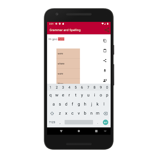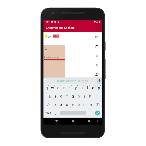 - Share the corrected text (Email, SMS, Twitter, Facebook messenger, other apps.)