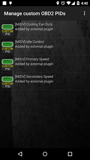 7) Usually this screen will not display any entries, unless you have added any pre-defined or custom PIDs in the past.