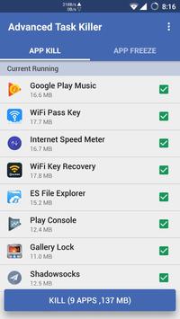 Advanced Task Killer works brilliant!It is the only real&free “app/task killer” which can kill tasks and apps 100%.For other apps can not promise kill tasks/apps totally and tasks/apps may restart in background.While Advanced Task Killer with the function of “Freeze”can handle it.