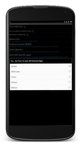 Some time when you close some apps they keep on running at the background. Select those frequently used apps and Advanced Task Manager will automatically kill them after a specific time selected by you.